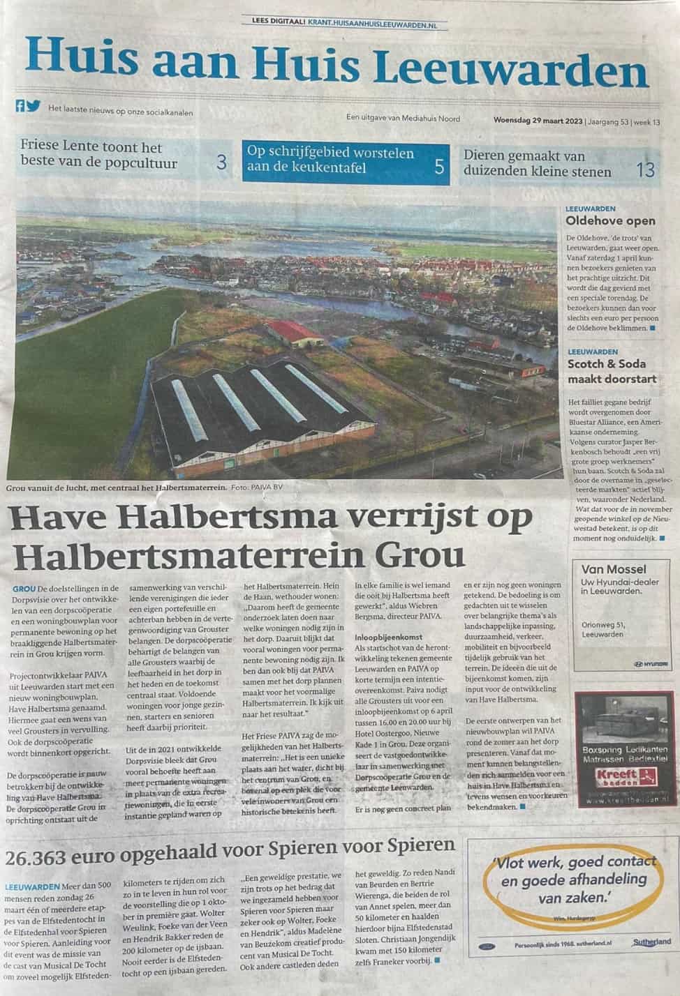 Projectontwikkelaar PAIVA uit Leeuwarden start met een nieuw woningbouwplan, Have Halbertsma genaamd. Hiermee gaat een wens van veel Grousters in vervulling. Ook de dorpscoöperatie wordt binnenkort opgericht. De dorpscoöperatie is nauw betrokken bij de ontwikkeling van Have Halbertsma. Lees hier het hele artikel.
